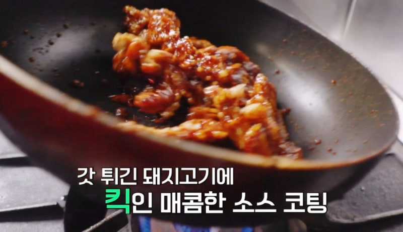 매콤한 소스를 입힌 바삭한 돼지고기 튀김은 매운맛을 좋아하는 분들에게 강력 추천!