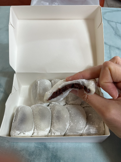 떡 겉면은 얇고 부드러워 입안에서 녹아들 듯하며, 팥 앙금은 과하게 달지 않아 여러 개를 먹어도 물리지 않았습니다.