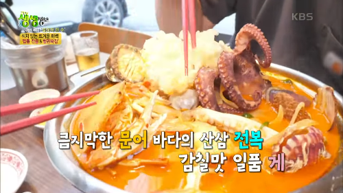 - 통문어, 전복, 꽃게, 가리비 등 싱싱한 해산물이 한가득