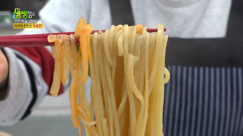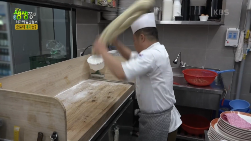 이곳에서 사용되는 비법은 바로 ‘힘’과 ‘손맛’에 있습니다. 주방 한켠에서는 무려 2.5kg 분량의 반죽을 한 번에 준비해 5인분 이상의 면을 만들어내는데, 대가의 강한 손길로 반죽을 세게 내리치는 소리가 마치 리듬감 있는 음악처럼 울려 퍼집니다. 양파, 당근, 호박 등 각종 채소를 날카로운 칼질로 신속하게 손질하며 재료 하나하나에 생명을 불어넣는 모습은 오랜 세월 단련된 기술의 결정체입니다. 일정한 두께를 유지하기 위해 손가락 하나로 면발을 정교하게 가르고 꼬는 작업은 기계로는 절대 구현할 수 없는 섬세함을 보여줍니다.