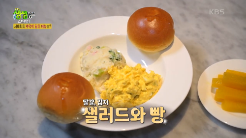 • 반숙 계란 프라이 & 감자·계란 사라다 & 식전빵 구성