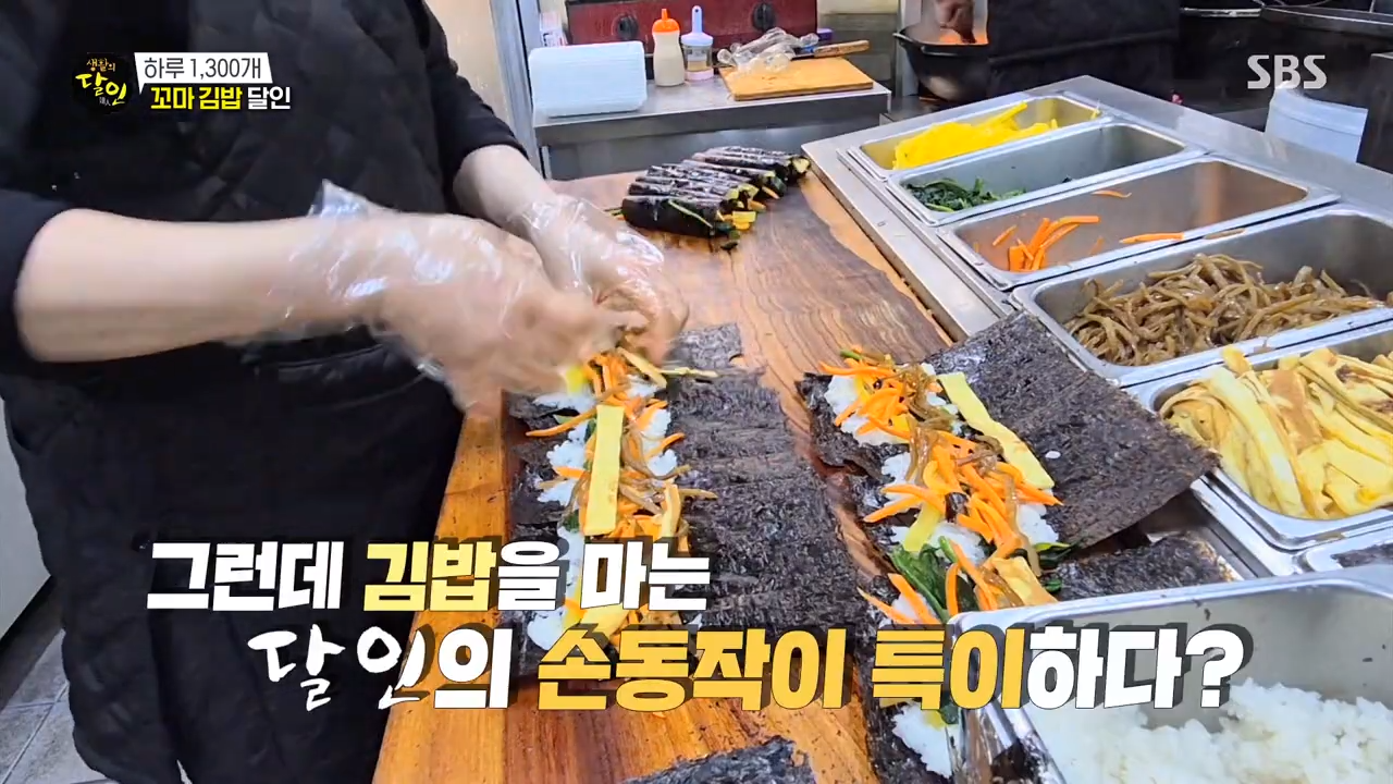 이곳이 방송에서 주목받은 이유는 다름 아닌 꼬마김밥의 놀라운 제조 속도와 완성도 때문이에요. 일반 김밥보다 작게 말아야 하는 꼬마김밥은 손질부터 조립까지 까다로운 편인데, 달인의 손길에서는 순식간에 가지런하고 단정한 김밥이 완성된다고 합니다. “10줄을 마는 데 19초 정도밖에 걸리지 않는다”는 후문이 있을 정도죠.