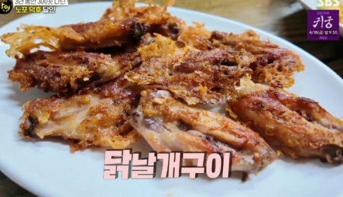 방송에 등장한 닭 날개 구이는 겉은 바삭하고 속은 촉촉한 식감으로