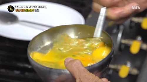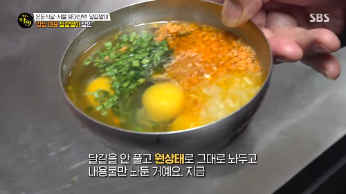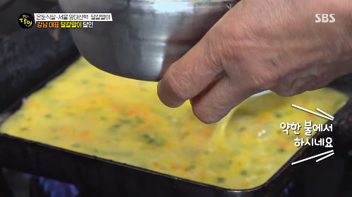 달걀은 조리 직전 풀어내고, 약불에서 수분을 날리며 부드럽게 익히는 방식으로 만들어지는데요.