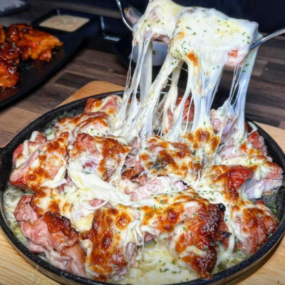 - 치킨: 도파민 폭발! 치즈+양념+면사리 환상 조합