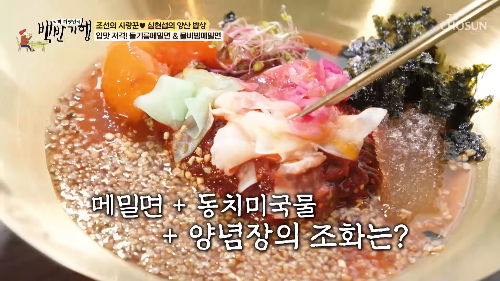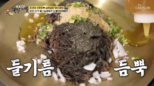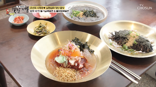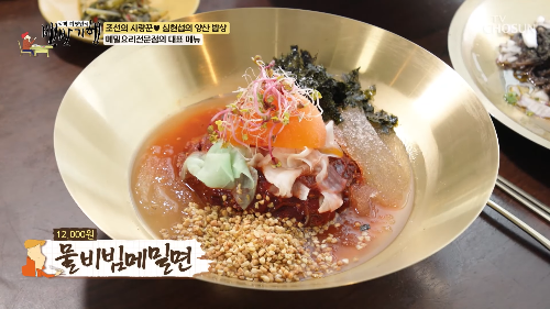 고소한 김가루와 들기름의 풍미가 돋보이는 들기름 메밀면도 백반기행에서 극찬을 받았어요.