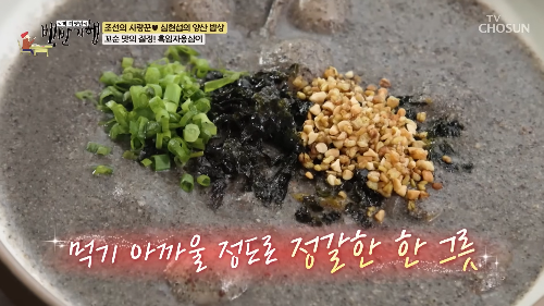 이번 에피소드의 주인공은 보기만 해도 건강해지는 고소한 흑임자 옹심이, 그리고 시원하게 즐길 수 있는 물비빔메밀면, 고소함 폭발 들기름메밀면입니다.