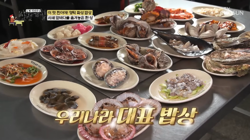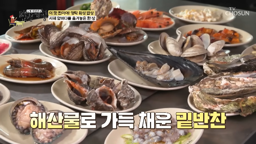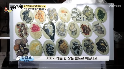 이곳에서 농어회, 전복, 가리비, 피꼬막, 산낙지까지 해산물 한 상이 펼쳐졌습니다.