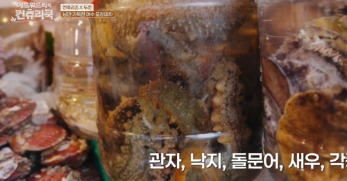 이곳 포장마차의 해물 삼합과 군평선이 구이는