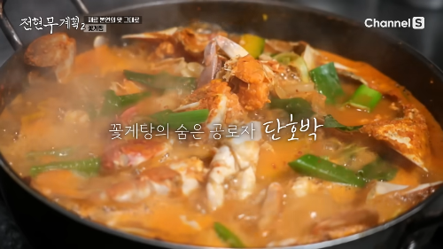 • 꽃게탕 국물: 된장·마늘·고춧가루에 큰 불 10분 조리, 단호박이 맛의 ‘킥’.