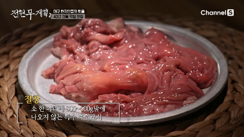 한 마리에서 2kg도 나오지 않는 귀한 부위로, 돼지의 두 번째 위인 벌집장 부위를 사용한다고 해요.
