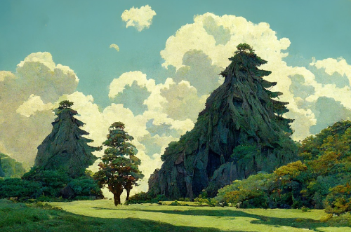 - “A studio Ghibli-style forest path lit by fireflies at night”