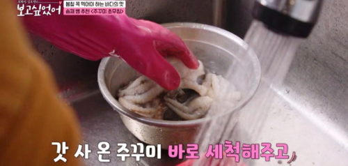 • 갓 세척한 싱싱 주꾸미를 통째로 입수!
