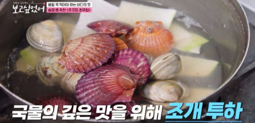 • 국물에는 조개를 넣어 깊은 맛을 더함