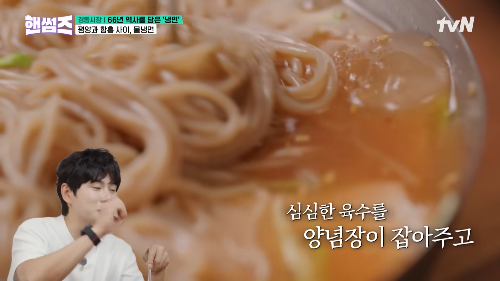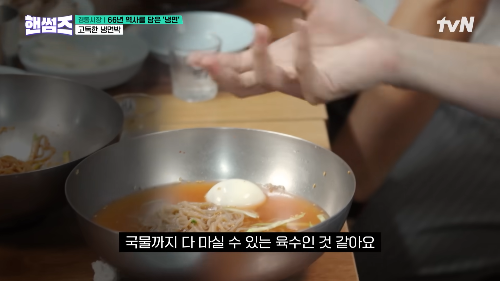 - 존박: “비빔냉면인데 안 물린다. 들기름 향이 너무 좋아요.”