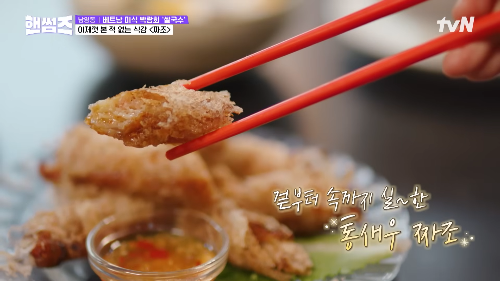 - 수제 짜조: 바삭한 그물형 피 속에 통새우 가득! "식감 대폭발"