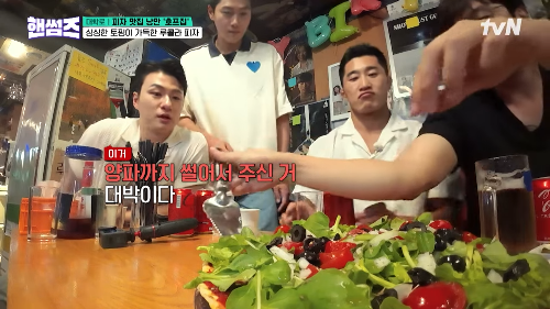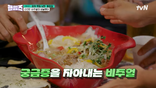 특히 <핸썸가이즈>에서는 치즈 폭포 고르곤졸라 피자와 골뱅이 소면이 소개되었죠!