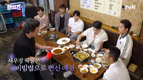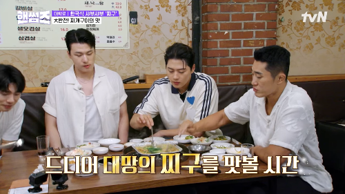 배우들과 제작진이 찐 반응으로 폭발적인 리액션을 보인 찌개+구이 세트!