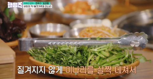 살짝 데친 미나리를 곁들여 먹는 전라도식 스타일이 소개되었죠.