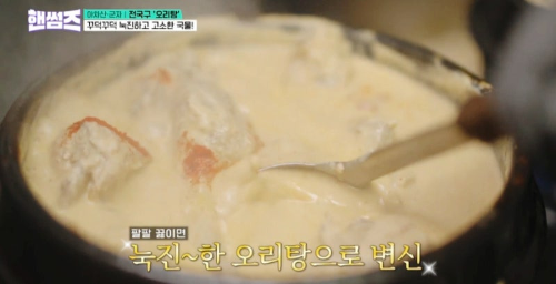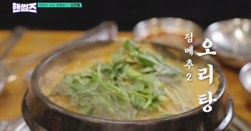 핸썸가이즈 방송에서는 들깻가루가 듬뿍 들어간 진한 오리탕과 함께