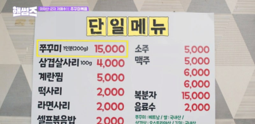 | 쭈꾸미볶음 (1인분) | 15,000원 |