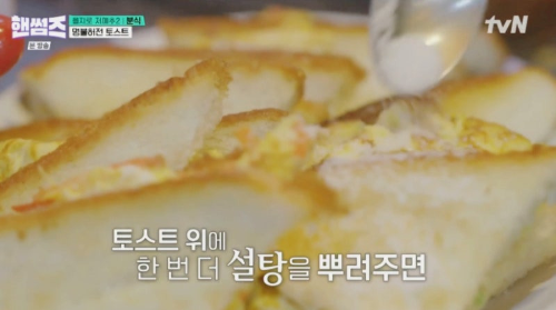 설탕의 은은한 단맛이 퍼지면서 "학교 앞 토스트" 감성 제대로 살아있어요.