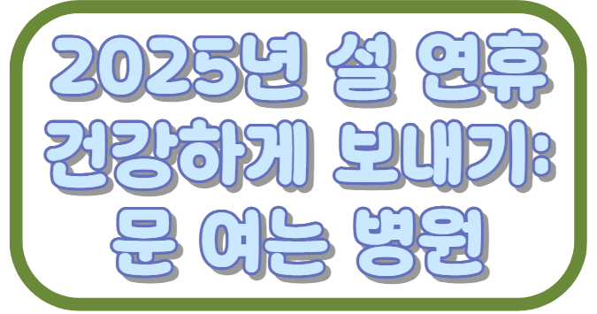 2025년 설 연휴, 건강과 안전을 미리 준비하고 가족들과 행복한 시간을 보내세요. 긴급 상황에 대비해 가까운 의료기관 정보를 미리 확인하고, 명절 스트레스도 잘 관리하길 바랍니다. 😊