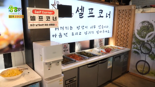 이 집의 히든 포인트는 셀프 반찬 코너예요!