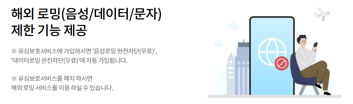 | 해외 로밍 제한 | 해외에서 음성/데이터/문자 자동 차단 |
