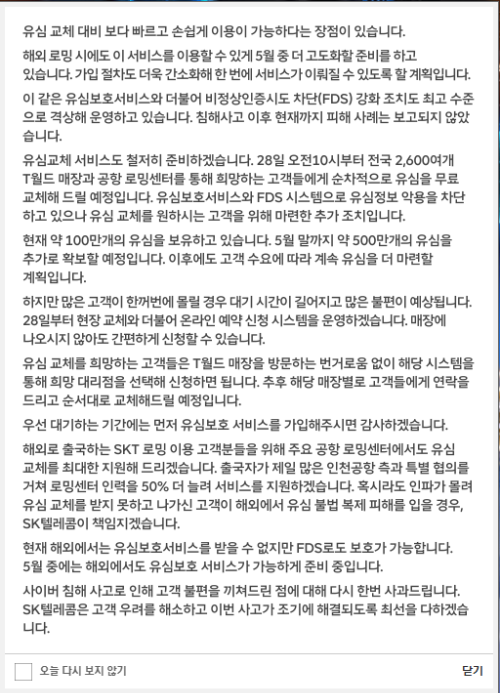 - 유심 무료 교체 진행 (그러나 유심 재고 부족 문제 발생)